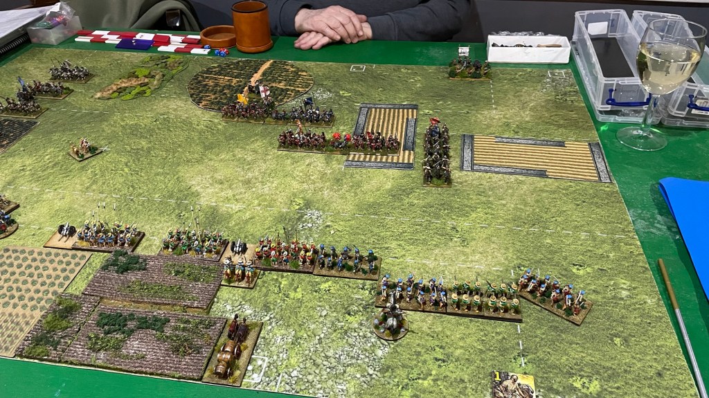 The Scots finally break the English one turn before their flank march arrives. my Scot’s were one point from breaking